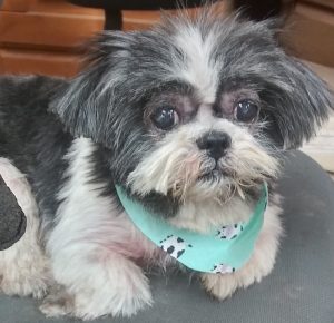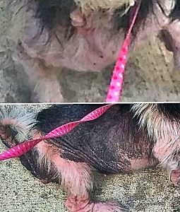 Minnie (sometimes know as Minnie Mouse) has some skin issues. You can see from her picture in September than she had a lot of hair loss and very irritated skin.